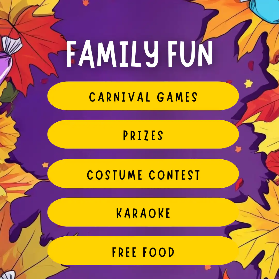 The Fall Festival runs from 5:00 to 7:00 PM. It’s the perfect two-hour window to enjoy games, food, activities, and quality time with your family without feeling rushed.